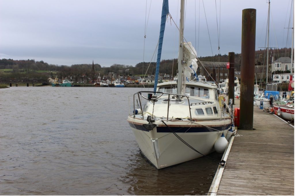 We spent an hour practicing manoeuvres under engine before attempting to get over the bar that is the entrance to the river Dee. At just under four hours before high water, there was enough water for us to bump over the bar and cautiously head up the well buoyed narrow channel to Kirkcudbright where we were all fast at 1956 hours. For me entering a new harbour, especially on a dark night, is exciting as it is a fun challenge.