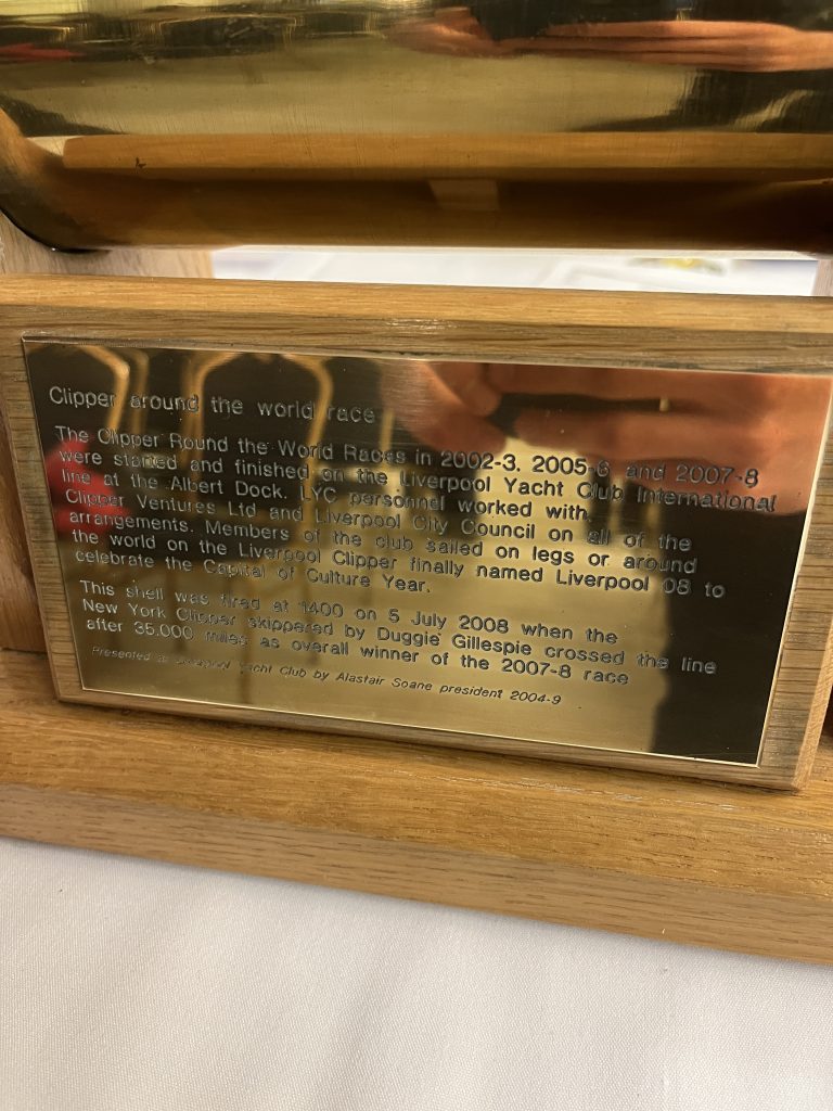 Finally, Alastair Soane reported to members that he is leaving Merseyside behind to move to the south of England. Alastair reminded members of the pivotal role that LYC played in helping Sir Robin Knox Johnston secure the start of the 2002 Clipper Race in Liverpool. Unfortunately the scheduled start date saw a terrible storm hit Liverpool, so the start was delayed until the next day, when the Clippers were seen off by a crowd of over 100,000 lining the banks of the Mersey! As a parting gift, Alastair very kindly donated to LYC a shell fired as the winning boat crossed the line of the 2007-2008 Clipper Race, thank you Alastair and LYC wishes you all the best in the next chapter of your life.