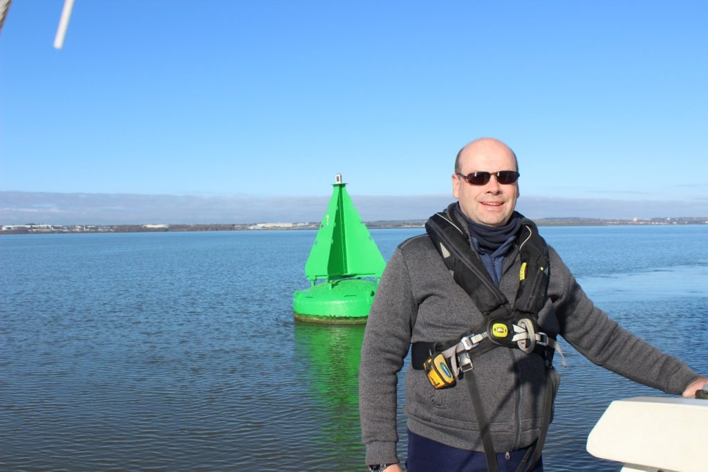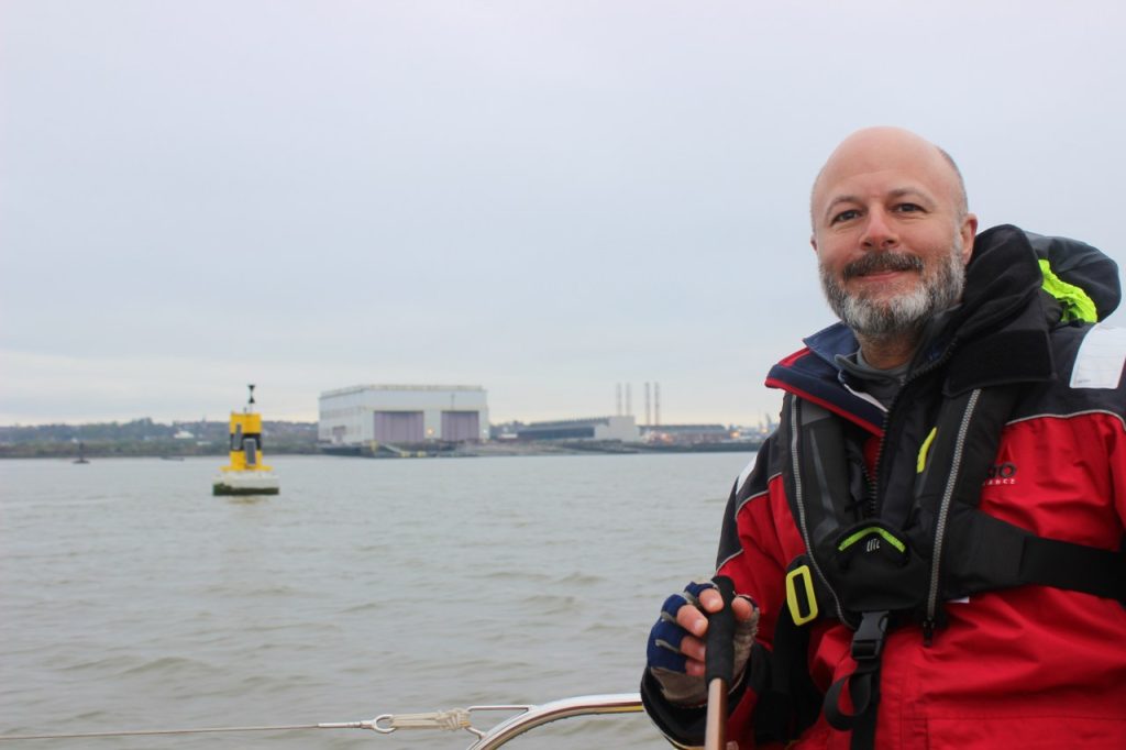 As we slipped from the marina, it was cold and there was not a breath of wind. We locked out at 06:15 and motored over to ‘Pluckington’ buoy, set the sails, and commenced the challenge at 06:28 with the sun rise. There was little true wind; fortunately, there was enough flood tide to give a sailable apparent wind and we set our course up the Middle Deep towards ‘G11’. By the time we got to ‘G9’ the tide and its apparent wind was disappearing. We managed to drift up to Garston before the ebb tide picked us up and took us past ‘G11’ at 08:51. One buoy down.
