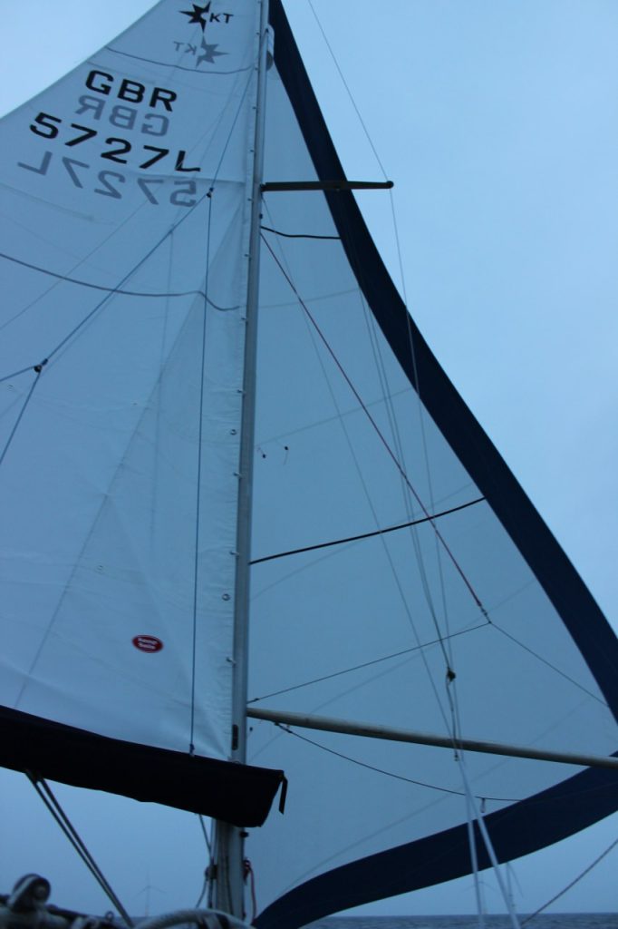 At the ‘Gut’ buoy we put a couple of reefs in the main before hardening up the sheets to go close hauled back to the Mersey. As we headed back the rain started, and the visibility was sometimes less than a mile.